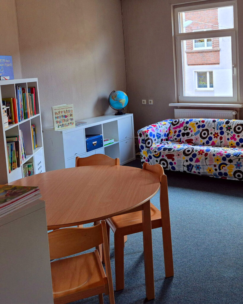 Hier befinden sich die neuen Räume für Kids und Teenies von 6 bis 11 Jahren. Die 1. Etage ist aktuell noch im Aufbau. Wir haben frisch renoviert und basteln an unserem Programm. Es gibt einen offenen Bereich zum Treffen und Chillen. Außerdem sollen hier kulturelle Angebote sowie musikalische und kreative Kurse statt finden. Darüber hinaus bieten wir freitags den offenen Garten auf dem großen Außengelände an.